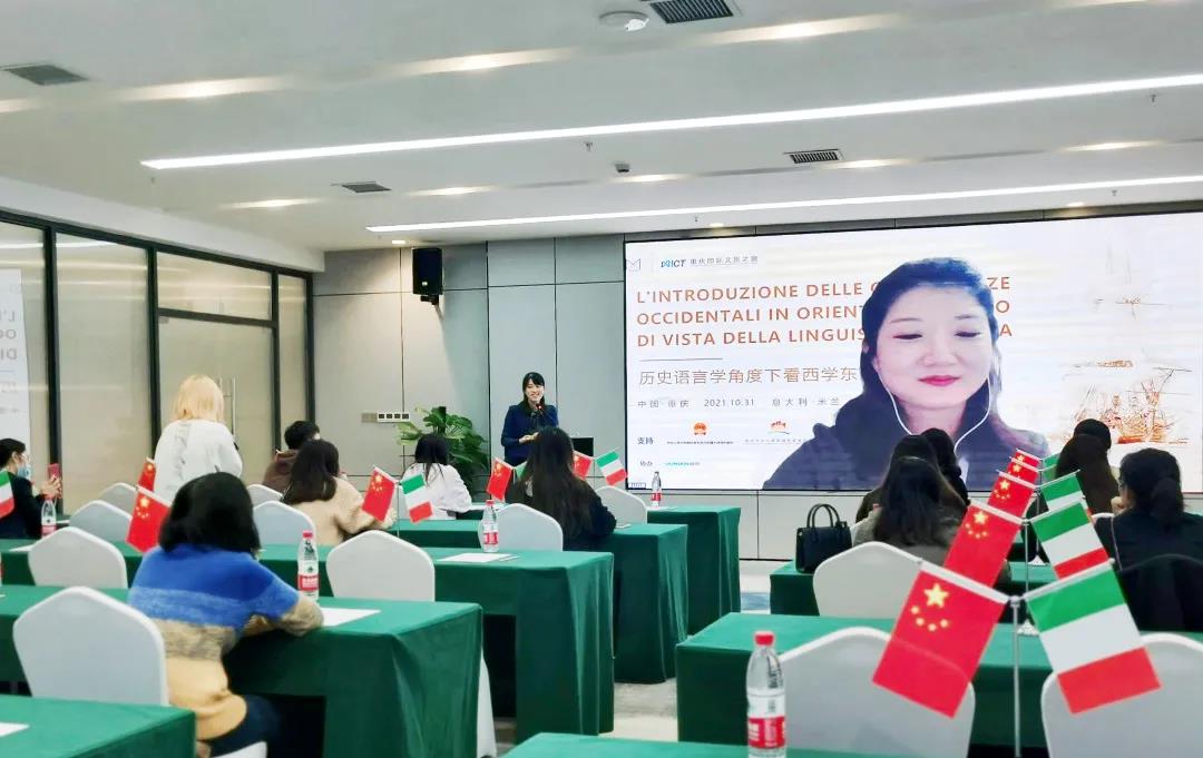 圍繞歷史語言學角度下看西學東漸,北京大學、西安外國語大學、廣州航海學院外語學院三位專家線上分享,四川外語學院、重慶外事外語學院、重慶理工大學近30名師生現場參會,意大利當地近170人線上參會。活動間隙通過會議系統線上分享重慶文旅宣傳片,促進重慶文旅在海外網絡的對外宣傳推廣。